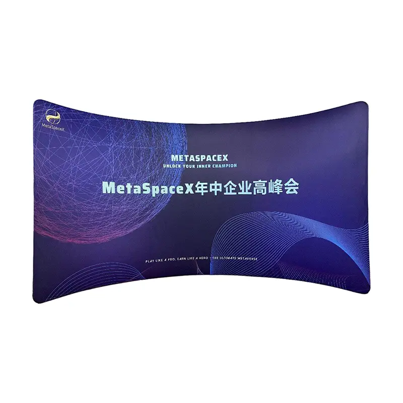 قاب پس زمینه منحنی از یک قاب آلیاژ آلومینیومی قوی و در عین حال سبک و پارچه کشباف کشدار چاپ شده با تصعید رنگ با وضوح بالا ساخته شده است، این پایه منحنی قوسی هم دوام و هم جلوه های بصری درجه یک را ارائه می دهد. این پارچه دارای رنگ‌های روشن و مقاوم در برابر خش است که طرح‌های پیچیده را با وضوح زیادی زنده می‌کند. ساختار منحنی آن یک صفحه نمایش یکپارچه و بدون چروک ایجاد می کند و مجموعه بدون ابزار به شما امکان می دهد یک پس زمینه حرفه ای را در عرض چند دقیقه تنظیم کنید.